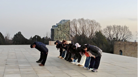师生冒着凌冽的寒风瞻仰百团大战纪念碑,并向革命先烈敬献花篮,向烈士们行三鞠躬礼,举行了庄重的默哀仪式,以此表达对革命先烈的崇高敬意和无限哀悼。