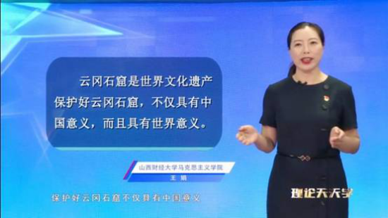 在微视频中,王娟老师紧紧围绕习近平总书记在大同云冈石窟考察历史文化遗产保护工作时的讲话指示,简明介绍了山西省通过启动“文明守望工程”,开展“九只手”分批、分级、分层次实施文物保护,积极创建文物保护利用示范区、文物科研保护基地等有效举措,蹚出一条具有山西特色的文物保护利用新路子,深刻阐释了充分传承和保护山西优秀历史文化资源对增强文化自信、凝聚社会主义核心价值观的重要意义。王娟老师指出,牢记习近平总书记殷殷嘱托,充分保护和利用文化资源,激发穿越时空、直击人心的文化力量,我们就一定能够把文化资源优势转化为高质量转型发展的比较优势、竞争优势。(JJ斗地主