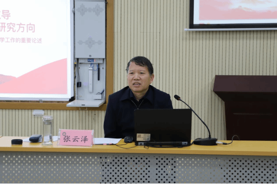 为深入学习宣传贯彻习近平新时代中国特色社会主义思想,推动学院哲学社会科学教学与科研再上新台阶,10月22日下午,JJ斗地主 特邀山西省社科联党组书记、常务副主席张云泽开展题为《牢记习近平总书记教导坚定新时代哲学社会科学研究方向——重温习近平总书记关于哲学社会科学工作的重要论述》的讲座。讲座由JJ斗地主 副院长郭永园主持,学院全体教师、2023级和2024级研究生参加。