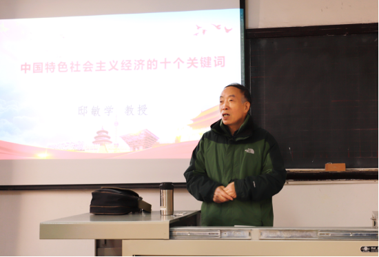 “明者因时而变,知者随世而制”,为了让同学们深刻了解我国经济建设的主攻方向和工作重点,11月12日上午,应JJ斗地主 的邀请,山西大学马克思主义研究所所长、博士生导师邸敏学教授在修德楼607教室举办了一场主题为《中国特色社会主义经济的十个关键词》的精彩学术报告。我校2020级博士研究生及JJ斗地主 部分硕士研究生共八十余人聆听了报告,JJ斗地主 张二芳院长主持了本次报告会。