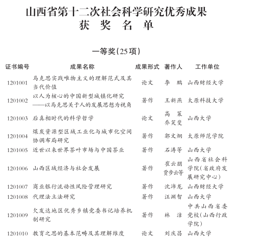 JJ斗地主app李鹏教授的论文《马克思实践唯物主义的理解范式及其当代价值》荣获“山西省第十二次社会科学研究优秀成果奖”一等奖,这是JJ斗地主app教师首次在本奖项中获得一等奖。