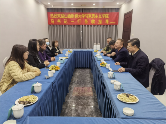 一行的到访表示热烈欢迎。学院党总支副书记王春雁介绍了党总支基本情况。党委书记马晓娟围绕全面提升高校基层党建工作质量、加强基层党务工作者队伍建设交流发言。参会人员围绕党务工作、支部建设、教师党支部双带头人工作开展深入交流探讨。