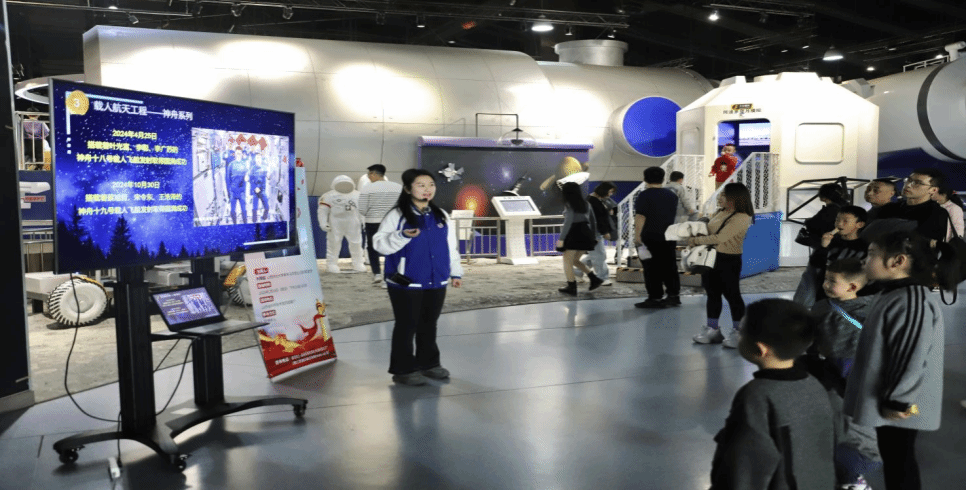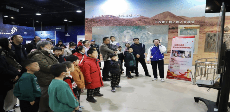 次日,在山西省科学技术馆“走向未来”展厅,刘荣庭同学以“航空航天的奇妙世界”为主题开展思政课堂第三小节的内容。在活动中,她带领现场参观群众进行体验式科技参观之旅,通过对科技成果的体验和资料分享,向在场群众展现了近年来国内航天领域的技术成就,旨在通过基层科普讲解聚焦国家科技创新成果,让公众在观察、聆听、讨论、体验中提高科学文化素养,引导公众在“沉浸式”思政课堂中更好地体验社会重大科技变革。