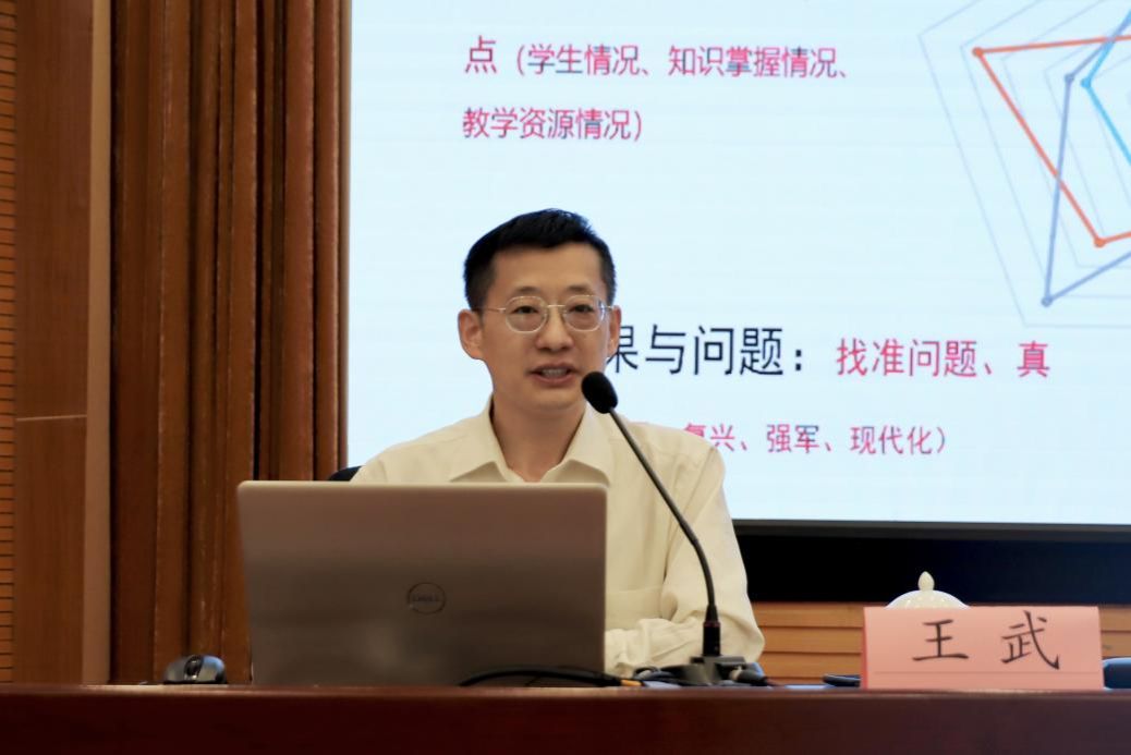 第三届全国高校思想政治理论课教学展示活动特等奖获得者、郑州航空工业管理学院王武副教授以“以赛促教:思政课教学的优化与提升”为题,结合自身参赛经验,以“备赛—参赛—研赛”为主轴,聚焦学情分析报告的撰写、教案的设计、教学课件的凝练和说课视频的录制等重要环节开展辅导交流。他表示,思政课教学要立足强化问题意识,以“巧妙的问题导入+幽默风趣的语言表述+严密的逻辑推理”为依循,做到“开头巧、主线清、内容实、形式美、案例近、总结妙”,进而将抽象理论转化为学生可感知、可参与、可践履的生动实践。