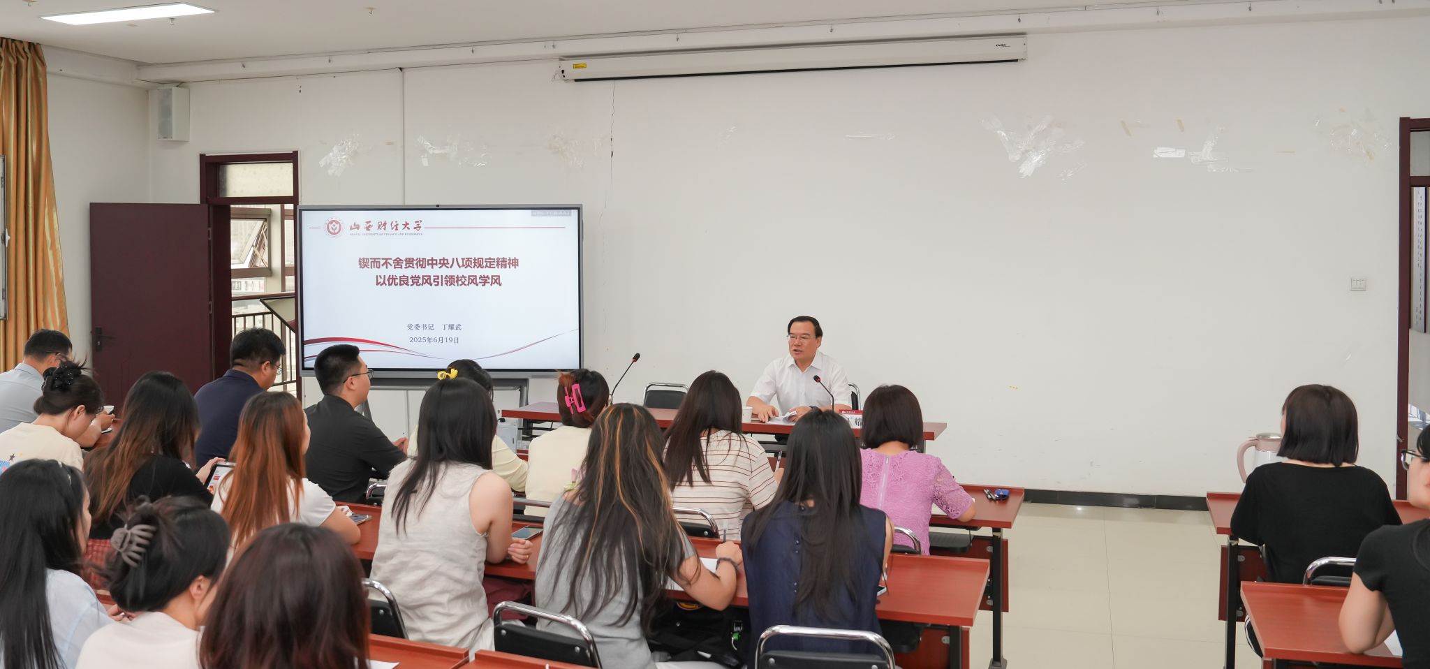 6月19日上午,党委书记丁耀武为JJ斗地主 学生讲授题为《锲而不舍贯彻中央八项规定精神 以优良党风引领校风学风》的思政课。马克思主义理论专业研究生、习近平新时代中国特色社会主义思想概论教研室教师等80余人听课。