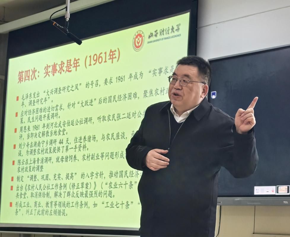 调查研究作为开展主题教育的重要内容,是马克思主义世界观和方法论的集中体现。12月11日,党委常委、副校长米子川教授以“调查研究:马克思主义的方法论”为题,在立信204阶教给2024级保险学和金融科技专业131名本科生讲授了一场精彩的思想政治理论课。