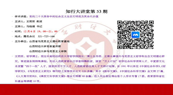 学习党的二十大精神专题讲座以网络研讨会的形式顺利举行。教育部“长江学者”特聘教授、中南财经政法大学哲学院院长、博士生导师王雨辰作了题为《党的二十大报告中的社会主义生态文明观及其当代价值》的精彩报告。JJ斗地主