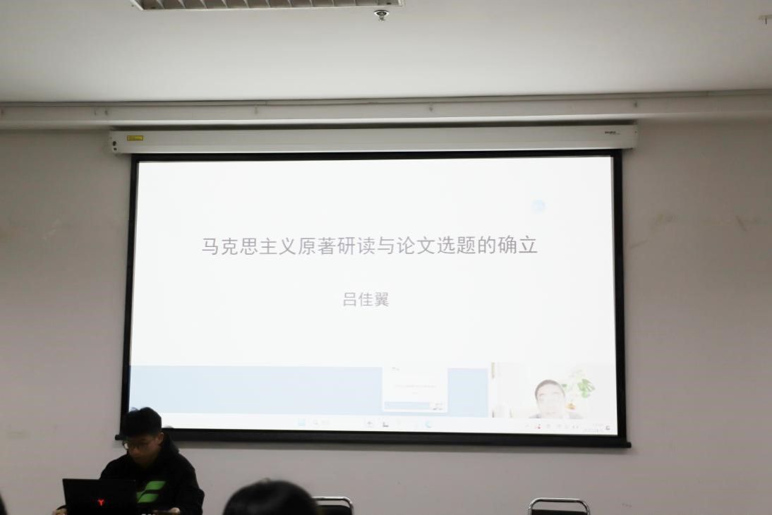 副教授、博士生导师吕佳翼所作的《马克思主义原著研读与论文选题的确立》线上学术报告。