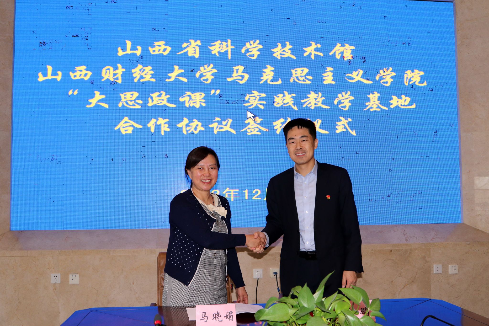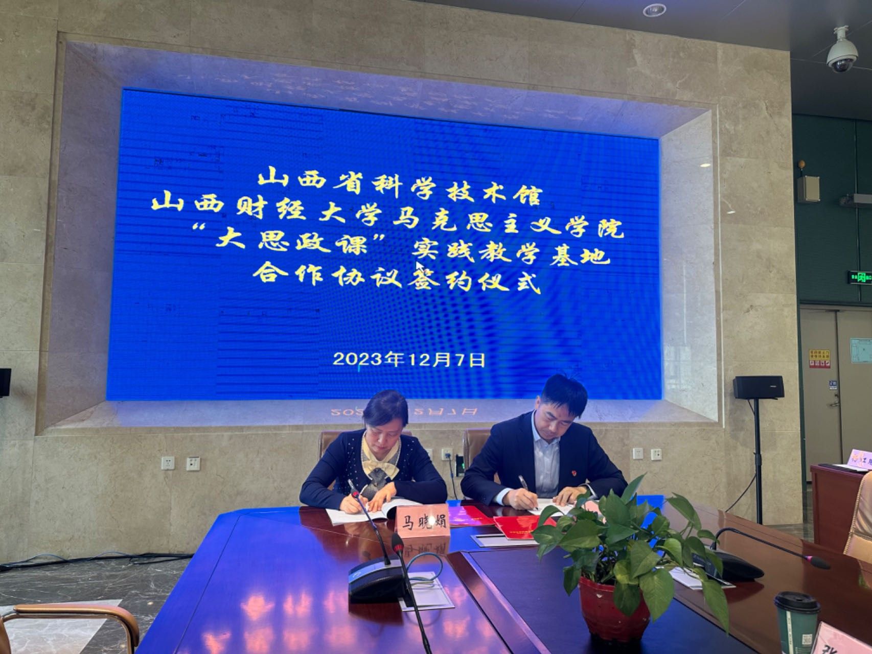 党委书记马晓娟与山西省科学技术馆党委书记靳鹏在科技馆二层会议室签署了“大思政课”实践教学基地合作协议。