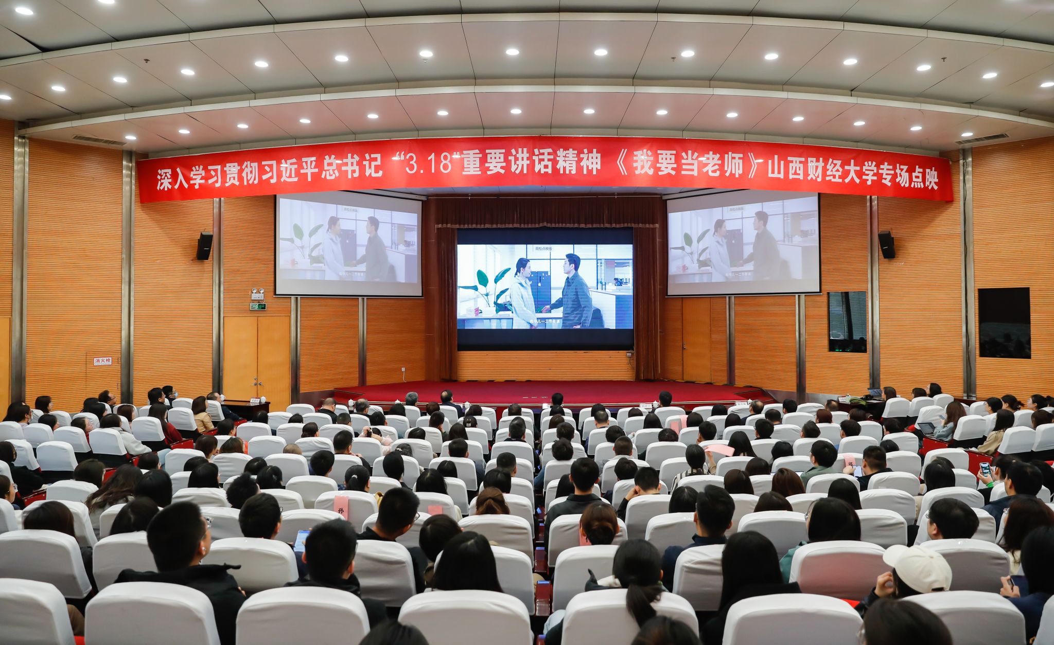 4月10日,中国电影史上首部思政课教师题材的轻喜剧院线电影故事片《我要当老师》在我校点映。省委第六巡视组组长吴照曲、我校党委书记丁耀武、校长田祥宇、思政工作相关部门负责人、思政课教师、辅导员、学生代表等200余人共同观影,同上一堂鲜活生动的影视“大思政课”。