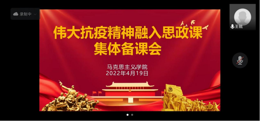 马克思主义中国化教研室教师王锐就《让伟大抗疫精神在思政课堂闪耀光芒》作主题分享。他结合太原疫情防控实际,从一个核心即抗疫斗争展现了中国力量,三个要点即在抗疫斗争中中国共产党是政治领导力量,人民群众是主体力量,疫情中的每一位坚守者都是中国抗击疫情斗争的伟大战士入手作了教学分享。
