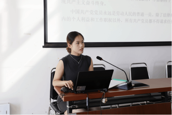 首先,JJ斗地主 研究生党支部副书记岳赛楠同学介绍了JJ斗地主 研究生党支部支部委员、常规工作、入党流程以及独具特色的党建活动,号召同学们坚定不移听党话、跟党走,增强对党的认同感和归属感。之后,岳赛楠同学以什么是党章、党的纲领和党的章程三个部分为切入点,向全体新生详细解读了《中国共产党章程》,指出要把学习党章同学习党的二十大精神紧密结合起来,切实将党章各项规定要求落到实际行动上,做到以学促干,以干践学。同学们纷纷表示,通过此次学习进一步加深了对党章知识的理解,端正了入党动机,在未来将积极贯彻党的宗旨,以实际行动不断向党组织靠拢。