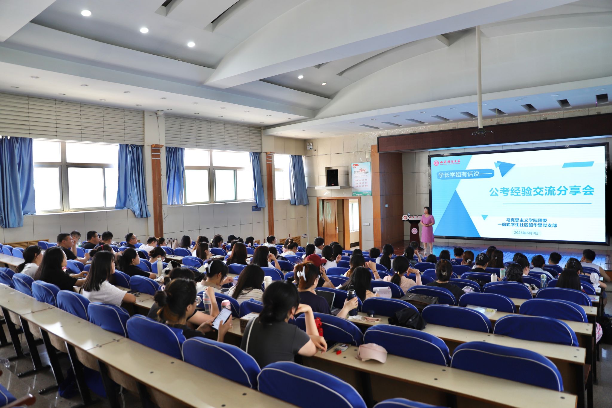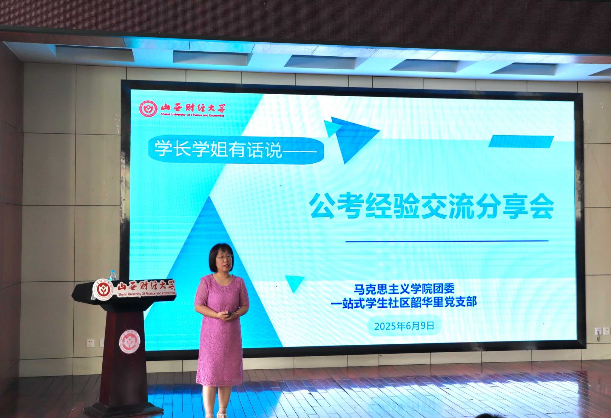 团委、一站式学生社区韶华里党支部于学校敏行楼301阶梯教室召开公考经验交流分享会。本次活动邀请部分成功上岸的毕业生代表为学弟学妹们分享公考经验,会议由学院团委书记、辅导员任智萍主持。