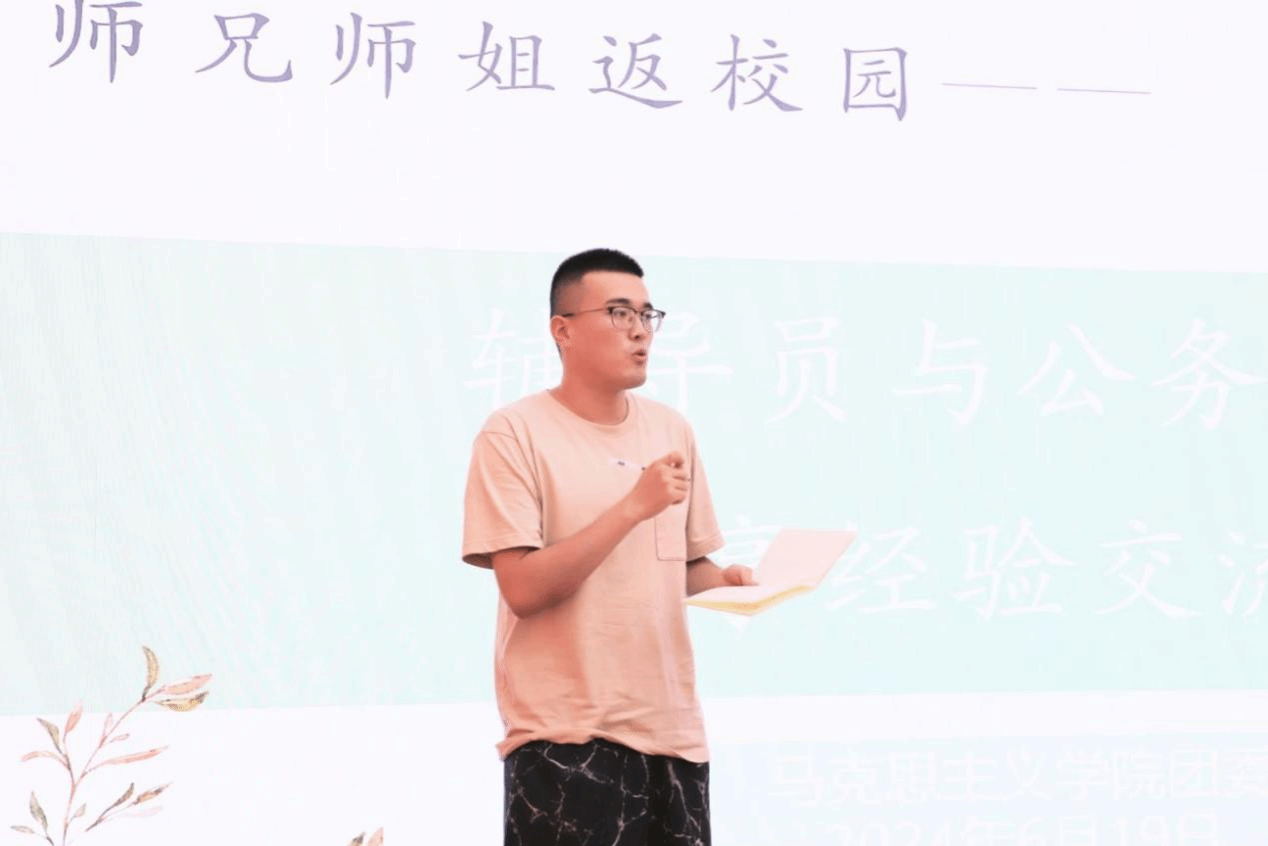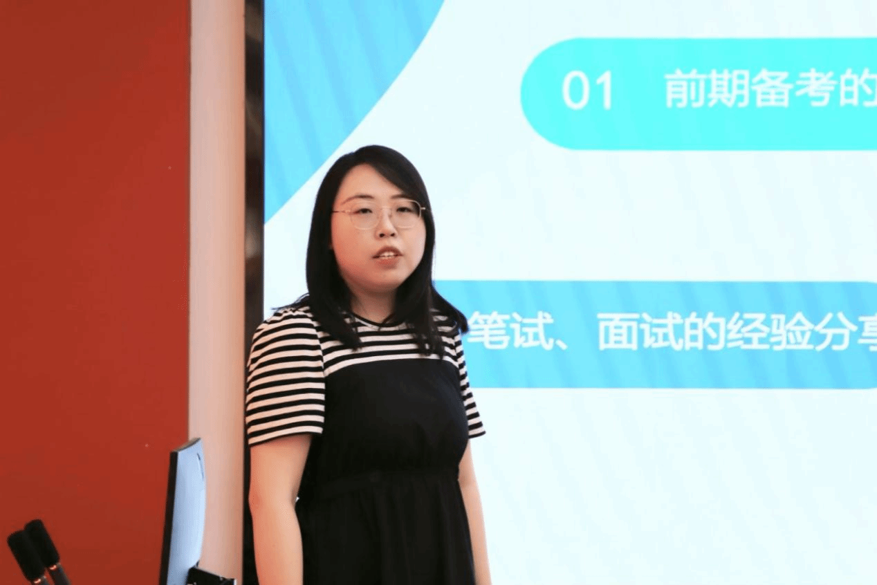 辅导员李欣结合自身经验为在场同学分享了高校辅导员备考攻略。李老师详细讲解了辅导员考试前期备考的规划、报考的院校、考试内容、笔试和面试经验、就职高校和高职的路径等内容。她建议同学们选择恰当学习方式,通过计时刷题摸索时间和节奏实现量质齐升。之后,李老师就辅导员招聘信息的获取途径做了详细介绍,她表示要灵活运用小红书、公众号等网络平台,学会搜集信息,鼓励同学们多锻炼、多尝试、多积累、多总结,在备考期间保持良好心态,以自信昂扬的姿态向美好未来进军。